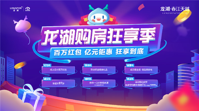 百万红包+亿元钜惠+购房重磅6重礼,红包礼、到访礼、金蛋礼、成交礼、限时礼、幸运礼等;活动期间成交,更抽清空购物车锦鲤1名;各种超值福利将如期上线,真正的年终血拼,真正的狂享到底,省钱的事交给龙湖,这个双11,认准龙湖·春江天越就购了!