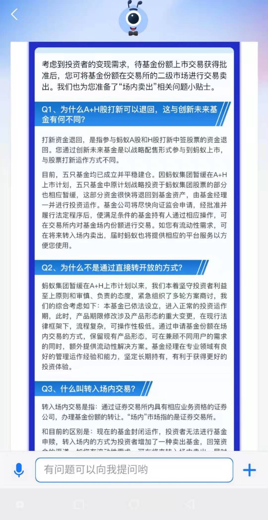 而在财富号的《创新未来基金每周运作情况快报》中,几家基金公司统一回复了关于创新未来投资者主要关注的问题。