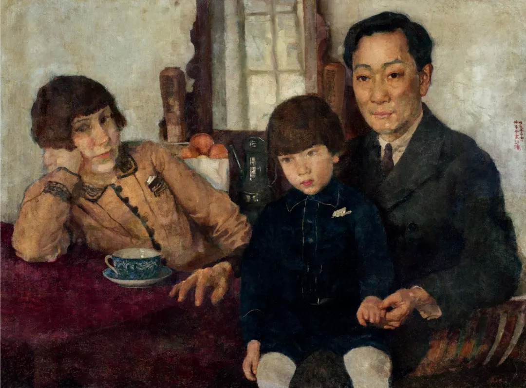 画面中的杨仲子,其标准的西方绅士和中国古典文人气质,融为一体。他的妻子是法国贵族出身,相对来说比较随便。而小儿子就有一点点抱怨的表情的。这幅画是一个民国时代的浓缩:西方和中国,古典和现代,各种文化的一个大融合。