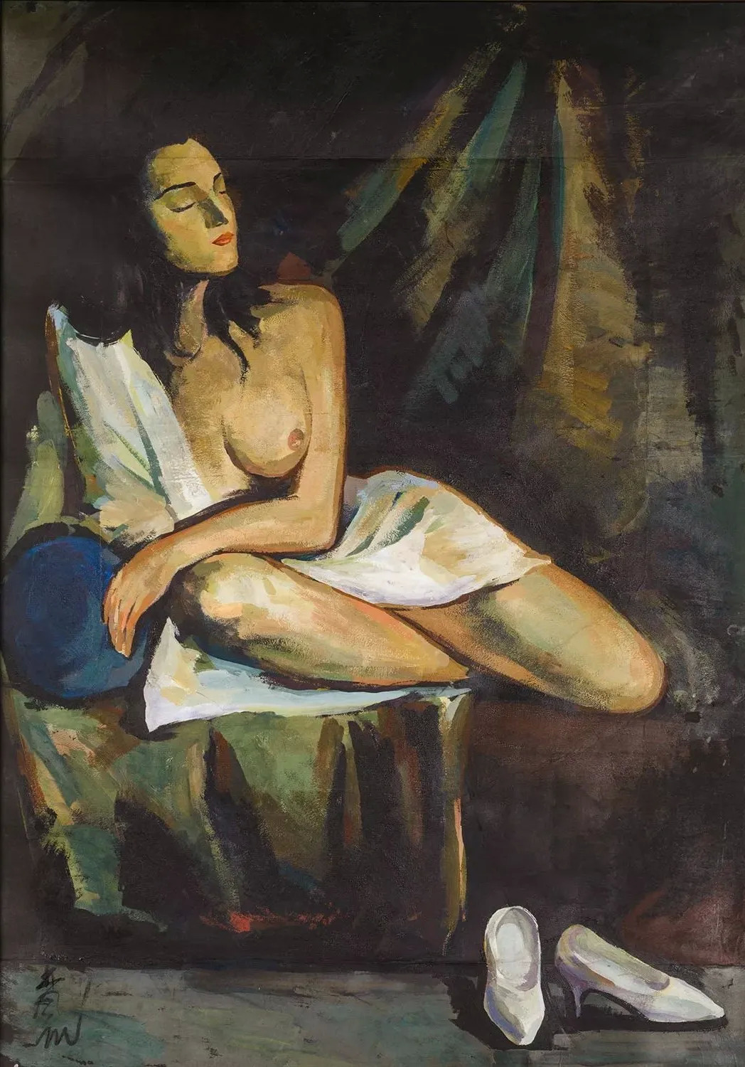 另一类探索现代主义的留法艺术家中,比如林风眠,这件《思》被公认为是他存世极少的早年作品,极其珍罕。主人公是他的第一任太太,是一个德国贵族。当时德国表现主义盛行,也是这位太太把自己国家的前卫艺术,介绍给林风眠。