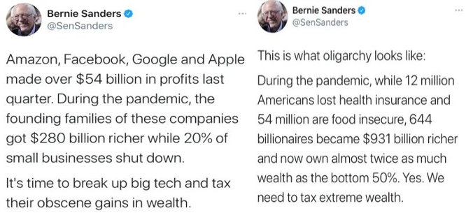 这是美国参议员伯尼·桑德斯在社交媒体上发布的一组数字。