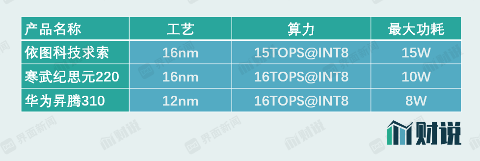 求索芯片对标的是寒武纪思元220和华为昇腾310,这两款均定位于边缘端AI芯片,除了算力要求之外,功耗同样也是考量指标。