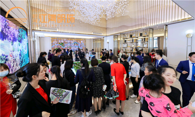 活动当天,高朋满座,场面火热异常,整个开放庆典气氛大气而国粹韵味浓厚:精致的中式茶歇、如沐清风的古筝表演……让市民们感受到这座新中式品质的非凡气质。