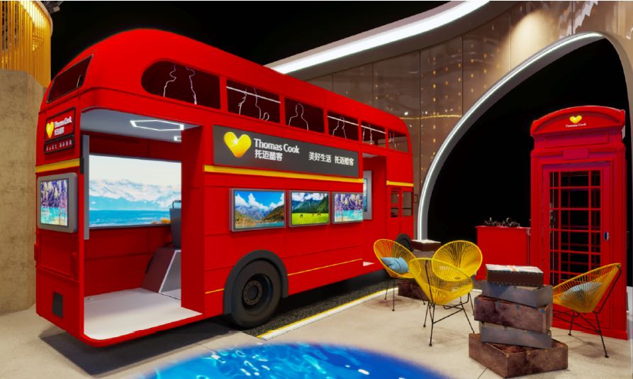 今年复星旅文也带着旗下收购的欧洲古老品牌托迈酷客(Thomas Cook)首次公开亮相进博会,用户可在展区内的“伦敦街头”红色双层巴士打卡英国名胜,还可在红色电话亭内给未来的自己制作有声明信片。