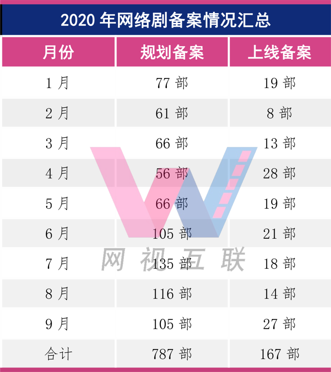截至9月底,通过规划备案的网络剧高达787部,取得上线备案号的网剧167部。整体来看,规划备案略低于2019年过审数量,上线过审数也离平台需求还有一定差距。
