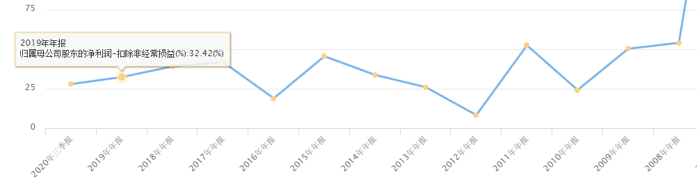 前面举的爱尔眼科的例子,近十年来90%以上时间的估值区间都在50~100倍之间,区间内的变化取决于当时资金的风险偏好,但相对而言,一直是医药股中估值最高的标的之一,根本原因在于,它也是A股近十年来业绩增速能维持在20%以上的最为稳定的公司之一。