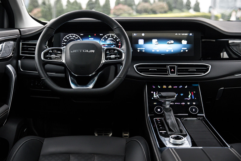 最值得关注的则是新车全新的内饰设计,官方定义为“影院级”。为何这样说,在坐进车内时,就有了直观的感受。最先映入眼帘的是双12.3英寸全液晶仪表盘与中控多媒体触摸屏形成双联屏,显示效果不错,中控屏则为1080P显示素质。在中控屏的下方则是一款触控式空调控制系统,整套内饰设计在保持原有家族风格的同时还加入了不少豪华品牌的设计元素,很难感觉到这是一款顶配在14万左右的SUV车型。
