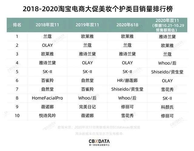 “美妆三巨头”雅诗兰黛、欧莱雅和兰蔻更是在天猫纷纷实现了销售额破10个亿的目标。