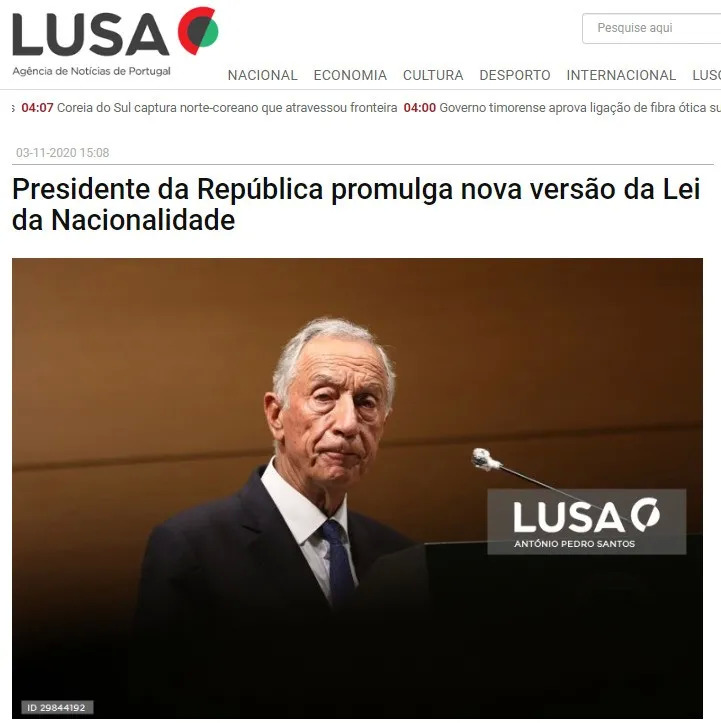 葡萄牙媒体关于新《国籍法》通过的报道截图