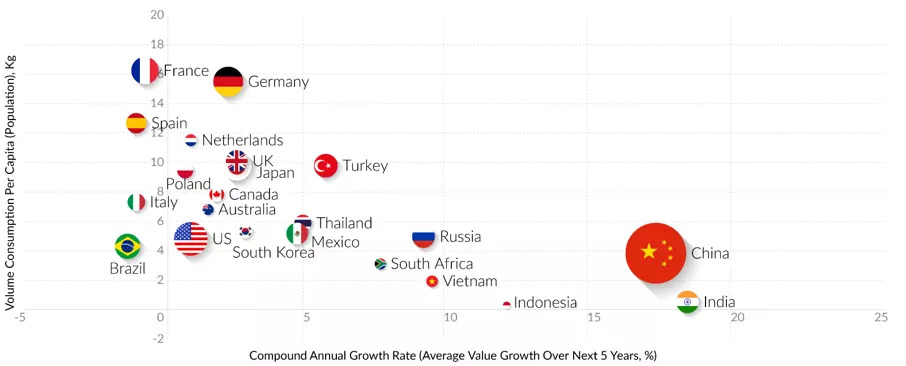 2018年全球主要国家酸奶市场对比。图片来源:Mintel