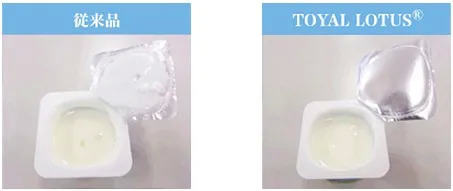 2011年,森永与东洋铝业合作开发了不沾酸奶的杯盖。众所周知,荷叶能防水并保持干燥和清洁,杯盖材质采用了一种被称为TOYAL LOTUS 的仿生技术,模仿“荷叶表面不沾水”的原理,通过无数个肉眼无法观察的凸凹构造,使水、酸奶、甚至油脂都无法附着。最初,这种神奇杯盖先在森永芦荟酸奶的季节限定款中试用。看到效果被消费者认可,遂扩展到其他几类产品中。