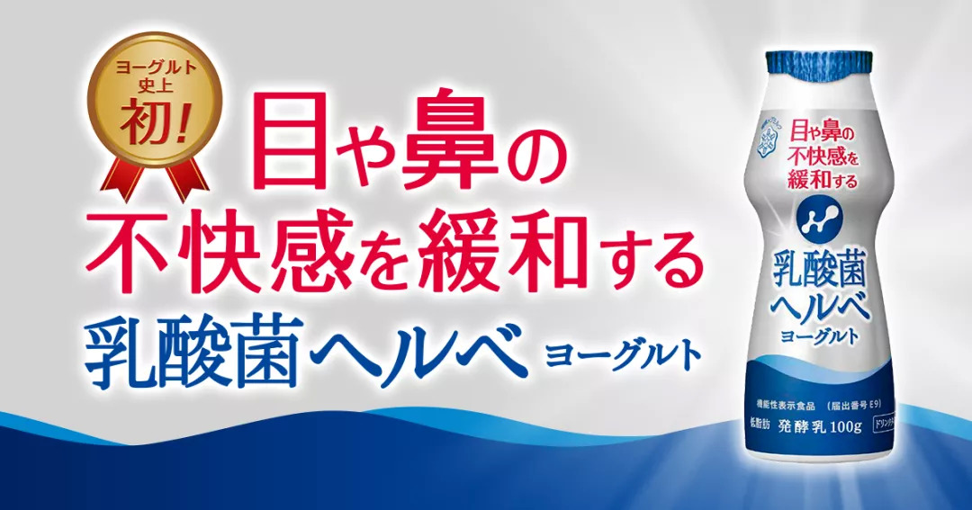 今年年初,雪印推出日本市场上第一款具有特殊功能FFC声明的酸奶,产品中含有10亿个瑞士乳杆菌(Lactobacillus helveticus)SBT2171菌株,有助于缓解因过敏产生的眼部和鼻部不适。据称连续饮用12周就可以减少喷嚏和不适症状,有效改善日常生活质量。