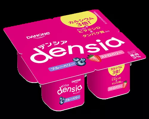 达能针对60岁以上老年人开发的Densia壮骨酸奶,含有丰富的钙质和维生素D,蛋白含量高达9%,无添加糖。