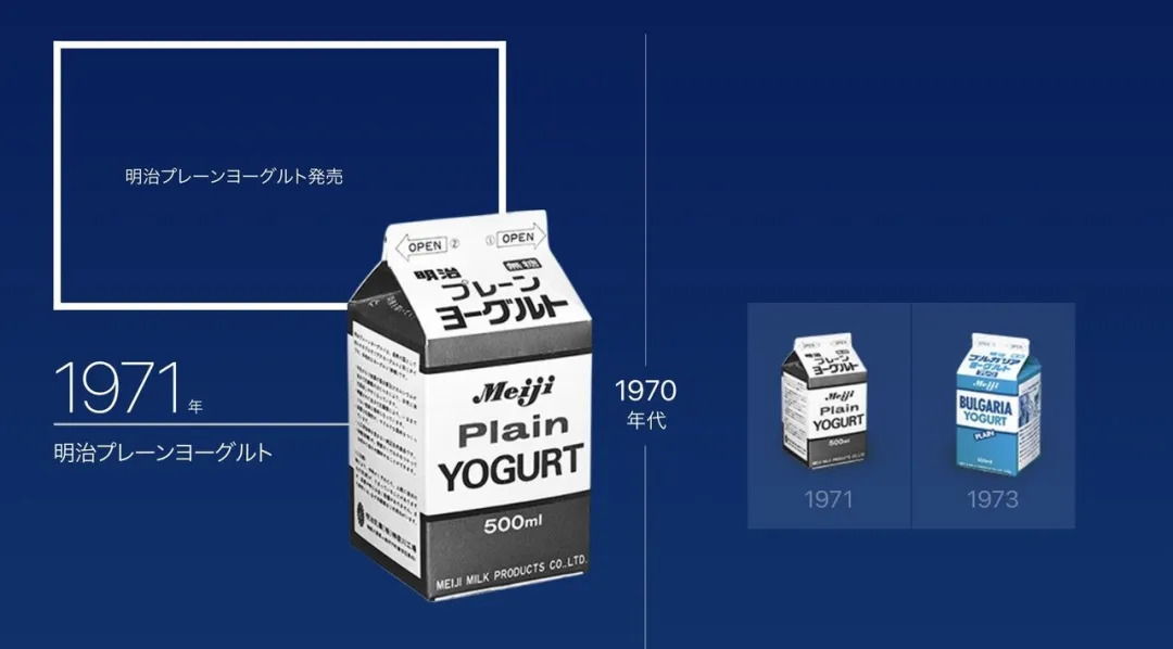 1980年代,明治公司将与保加利亚合作研究乳品微生物上升到了公司战略层面,随后数年,拥有自主知识产权酸奶菌株的产品相继问世,进一步巩固了在日本酸奶市场中的领军地位。在产品包装上,明治一方面与时俱进,紧跟时尚潮流,另一方面充分考虑产品特性和消费者需求,设计了多款新包装。