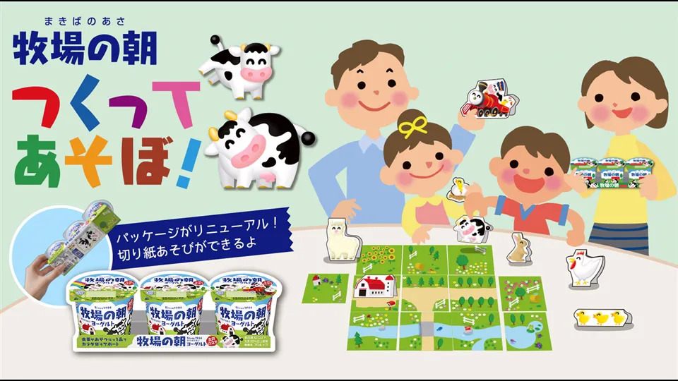1986年,雪印发布日本市场上价格最亲民的产品「ヨーグルト牧場の朝」。名字采用日本小学生人人必学的儿歌「牧場の朝」,纸质包装上印有不同图案,孩子们可以将其制成精美的手工制品。