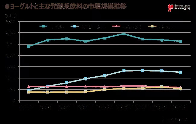 2011-2019年,日本发酵乳市场中主要细分品类的销售额增长图。图片来源:prtimes.jp