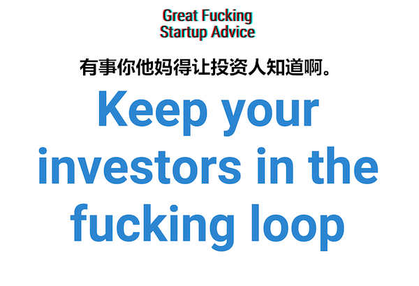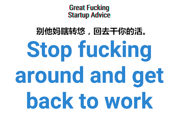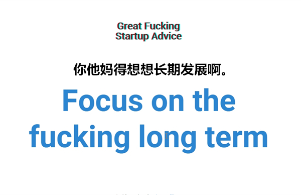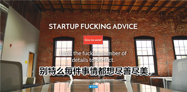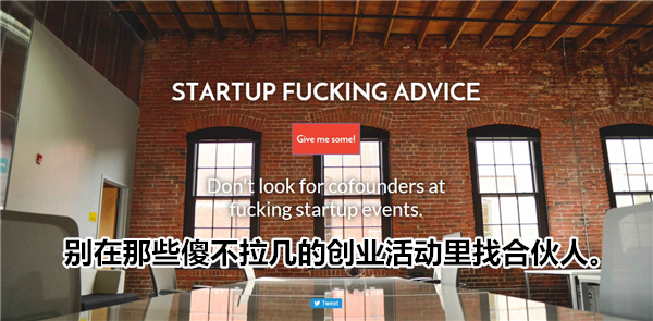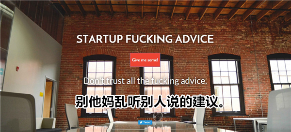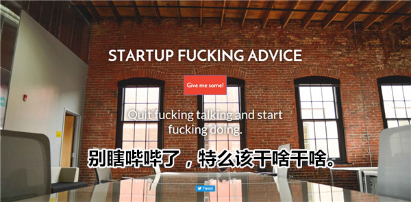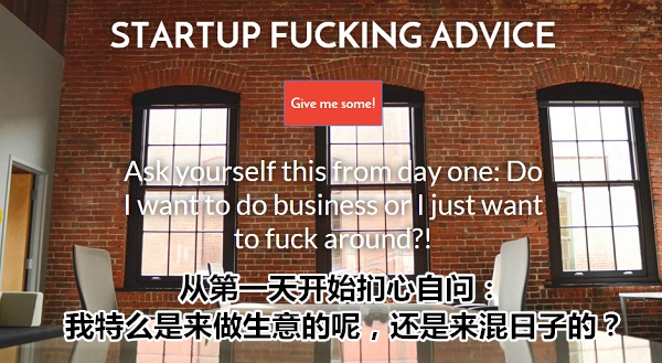 “Great Fucking Startup Advice”这个网站出现得早一些,同样是句句不离脏字,把你的左边脸打得啪啪响。