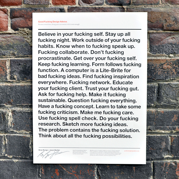 他们收集了平常教授、同学说的话,结合书里看来的启发和个人生活体验,做了个网站叫“Good Fucking Design Advice”。