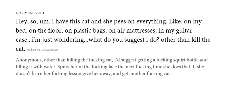不知道是找虐的人太多,还是无聊的人太多,在Tumblr上竟然还有一个名叫“Fucking Advice”的页面。