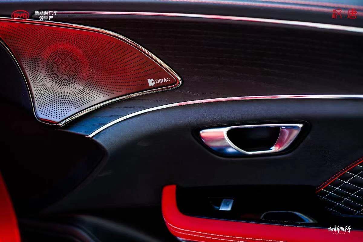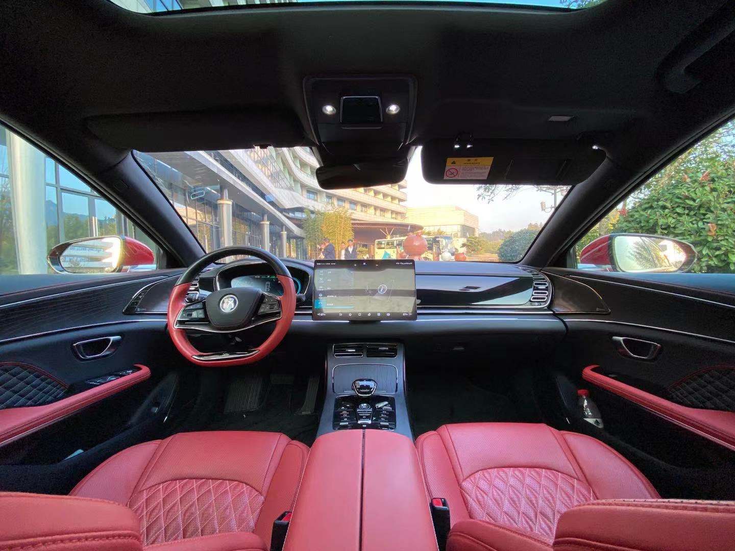豪华,这一次是比亚迪汉EV最想表达的元素。此次试驾车为四驱顶配车型,补贴后售价27.95万元。能看出这是一辆比亚迪麽?反正当我坐进车内后确实很难相信。红黑配色让车内的豪华气质尽揽无疑,座椅和门板处有着不少龙的设计元素,木质内饰板,更是在科技感上加入了古典质感。液晶仪表和比亚迪专属的可旋转中控大屏,又让这种古典豪华美中加入了些许科技质感。