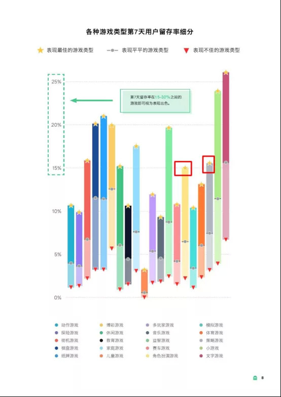 Mobvista 旗下移动游戏数据分析公司 GameAnalytics曾发布《移动游戏关键指标分析报告》,基于对6万多款DAU超过1000的手游产品和30亿玩家(按设备)的分析,总结出了各个品类的留存率、参与度和付费转化率数据。