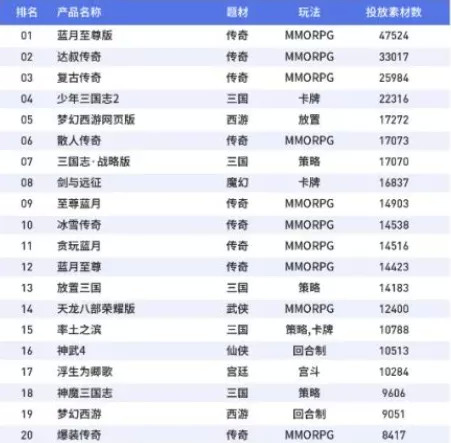 根据DataEye发布的《2020年移动游戏半年度买量白皮书》显示,在中重度游戏买量方面,TOP20的产品中,有端游IP做背书的产品达到了13款,其中大多数为“传奇”IP。