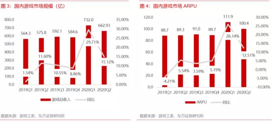 根据东方证券与游戏工委共同发布的数据显示,2020Q2国内游戏ARPU达100.4,同比增长12.51%。