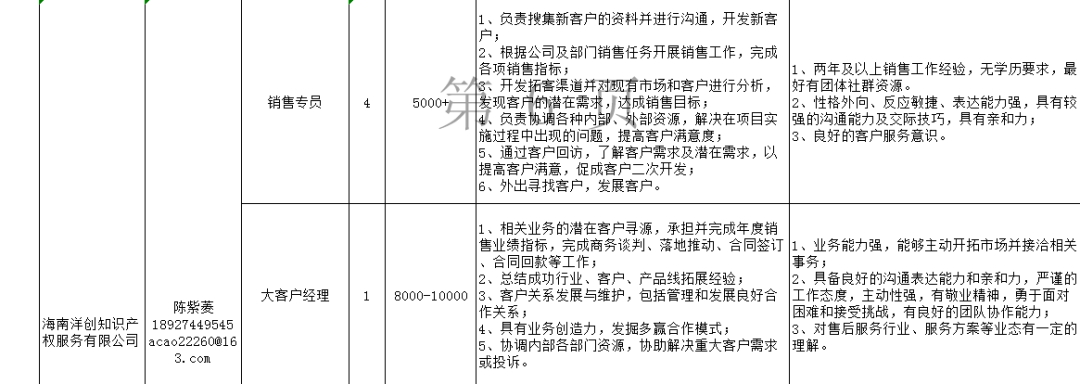 为充分发挥知识产权服务业吸纳就业作用,促进知识产权服务业可持续发展,根据海南省相关文件要求,海口市市场监督管理局组织本地知识产权服务机构开展知识产权服务业线上专场招聘活动,面向全国公开招聘优秀知识产权人才和高校毕业生。