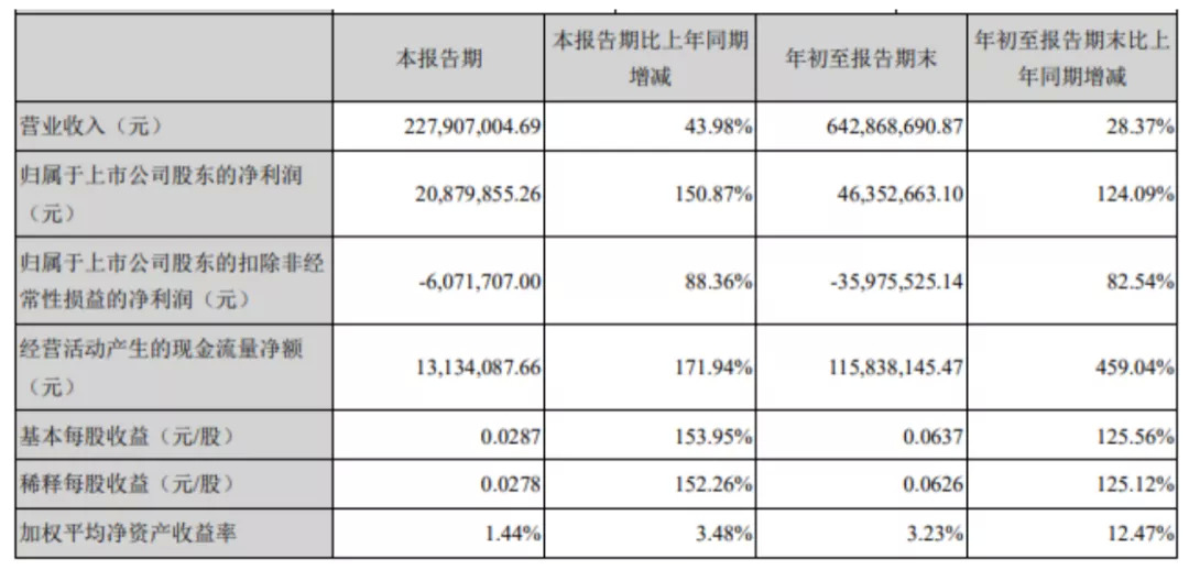 中文在线前三季营业收入6.43亿元,同比增28.37%;归属于上市公司股东的净利润4635.27万元,同比增124.09%;归属于上市公司股东的扣非净利润亏损3597.55万元,同比增长82.54%。