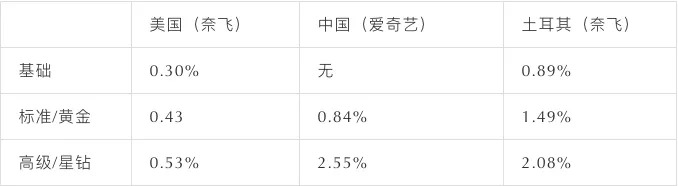 表1 奈飞、爱奇艺会员价格占各国月人均可支配收入比