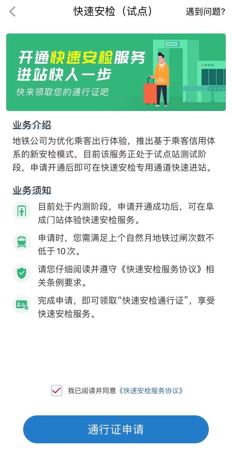 这种“信用安检”去年起在北京地铁阜成门站试点,乘客可以通过亿通行APP申请通行证。