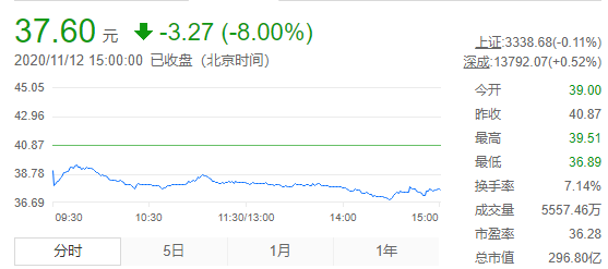 从12日早盘,涪陵榨菜低开后便迅速下挫,午后股价更是一度接近跌停,截至收盘,股价报37.60元/股,仍跌8%。