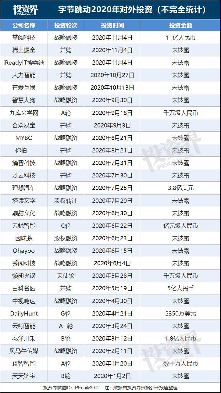 字节跳动扫货:1天出手3家企业,2020投资版图浮出水面