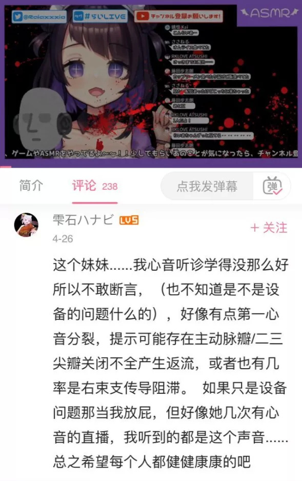 然而因为有些播主涉嫌“软色情”,ASMR 在 B 站等地是半地下状态,只能用“奥数魔刃”等替代词在审核默许的状况下存活。即使如此,ASMR 依然积聚了大量拥趸,甚至有医学生听一个主播的心跳音“在线听诊”,发现她可能心脏有问题,主播也因此去做了检查(幸无大碍)。此事被戏称为“赛博华佗”。