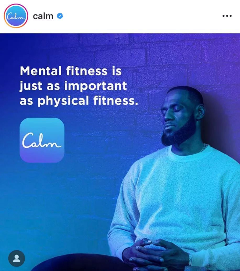 这也让 Calm 有足够多的钱在电视媒体打广告,它 15 秒钟的“雨打树叶”广告已经深入人心。更不用说,勒布朗·詹姆斯也给 Calm 做过代言,这让 Calm 加入了耐克、可口可乐、沃尔玛、AT&T、Beats、GMC、起亚汽车、日默瓦旅行箱、通用磨坊等詹皇代言品牌的行列。