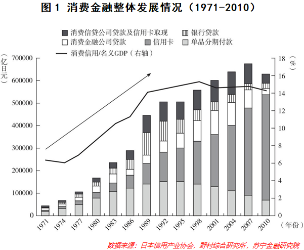 这类高价产品进入一般收入的家庭之中,极大的刺激了消费金融的扩张。90%以上的汽车分销商提供分期付款的业务,实力强劲如松下、东芝这类流通业巨头,纷纷设立消费金融部门。没有实力成立专门消费金融部门的中小企业则和“信贩公司”合作,设立统一经营消费金融的商业企业协会。