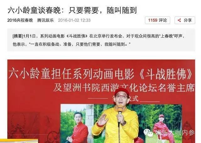 此前,六小龄童曾经表示自己在精心的筹备节目,并说“只要央视需要,我随叫随到”。可是,他并没有收到春晚节目组的邀约。