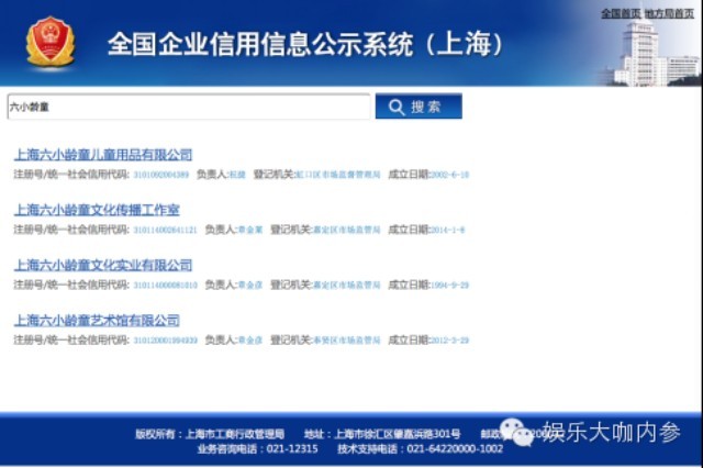 以“六小龄童”为关键词,内参君总共检索到4家企业,除成立于2002年6月的上海六小龄童儿童用品有限公司已被吊销外,上海六小龄童文化实业有限公司(下称“六小龄童文化”)、上海六小龄童文化传播工作室、上海六小龄童艺术馆有限公司三家企业的登记状态都为存续。