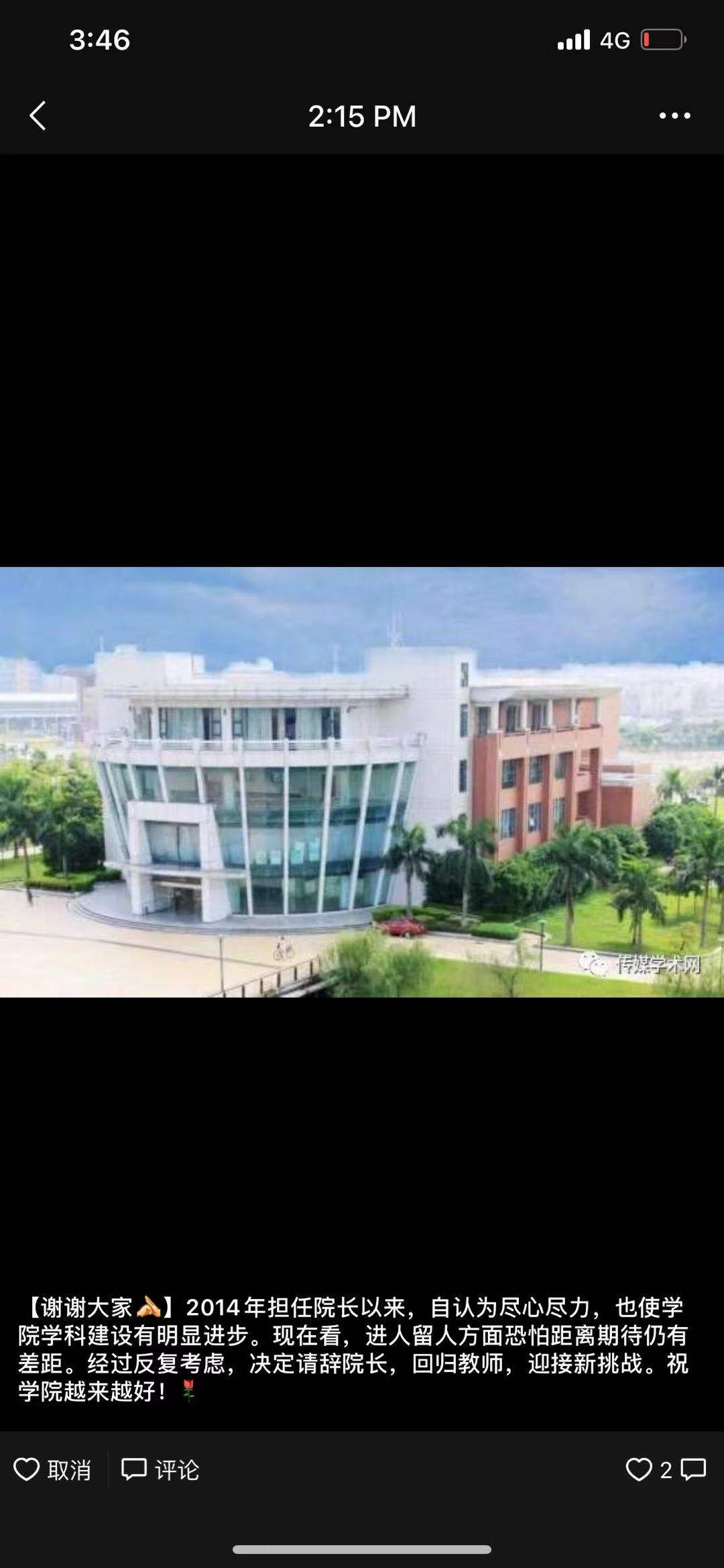张志安在其微信朋友圈称,“2014年担任院长以来,自认为尽心尽力,也使学院学科建设有明显进步。现在看,进人留人方面恐怕距离期待仍有差距。经过反复考虑,决定请辞院长,回归教师,迎接新挑战。祝学院越来越好!”