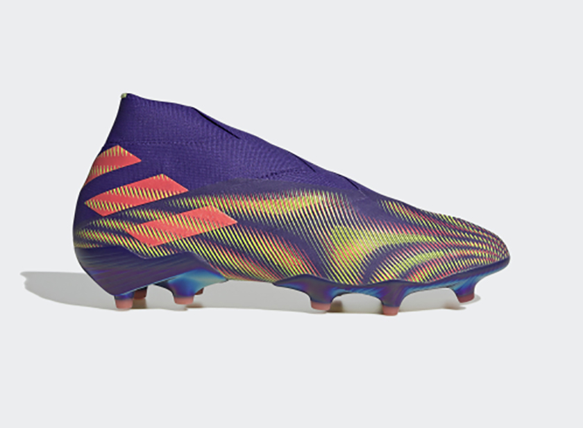 据介绍,adidas NEMEZIZ + FG这款足球鞋适合偏硬天然草场。鞋面设计借鉴了运动绑带,具有一定的贴合性;前掌采用无系带设计则是为了增加触球区面积。