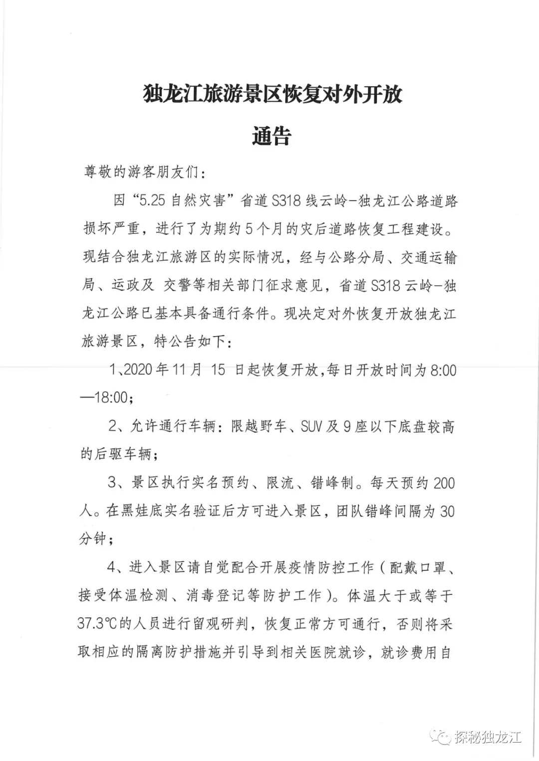 据云南贡山独龙族怒族自治县文化和旅游局微信公众号消息,经过5个多月的道路恢复工程建设,云南怒江州贡山县通往独龙江乡的公路基本具备通行条件,自11月15日起,独龙江景区开始对外开放。