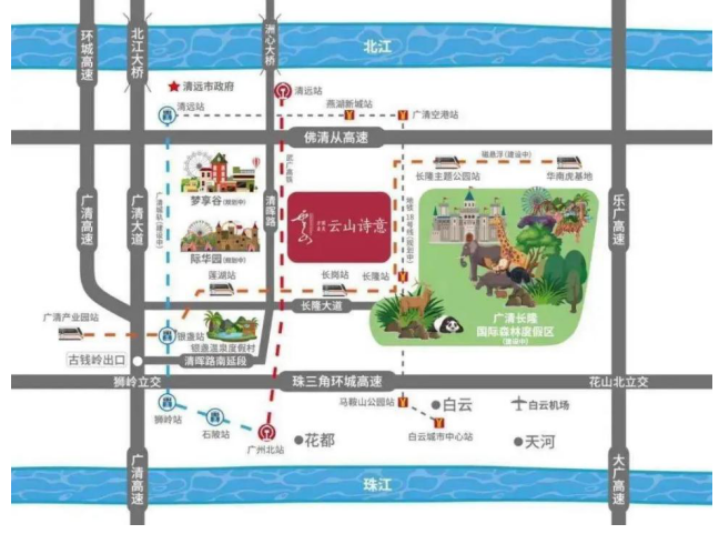 从方圆豪美·云山诗意出发,出门5分钟可达广清城轨银盏站,300米即到清远磁悬浮长岗站,项目享“城轨辐射效应”利好,未来的广州地铁18号线,加上广清高速、佛清从高速、珠三角环城高速等高速路,连接广州、中山、珠海等地,轻松实现大湾区1小时生活圈!