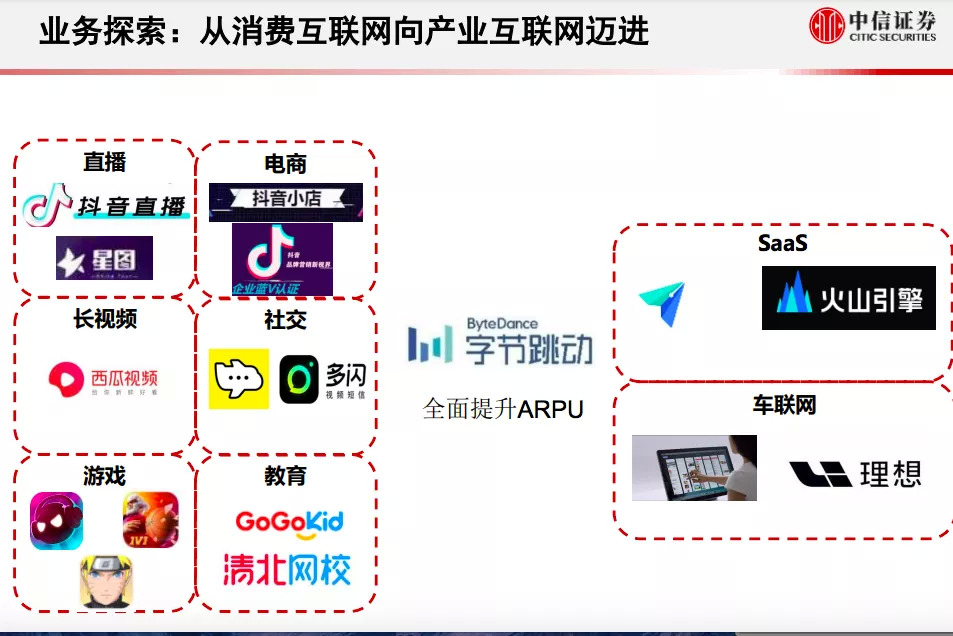 目前字节跳动已经被验证成功的产品,被外界归结为“图文内容/短视频-AI推送-广告变现”的商业模式,算法、流量、组织能力、高效率商业化,是其被反复验证的四大优势,也是它攻城略地的杀手锏。
