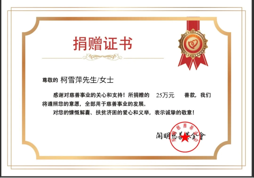 感谢您向开明慈善基金会广东同心·筑梦专项基金捐赠善款25万元,助力开明慈善基金会服务国家脱贫攻坚和乡村振兴战略,开展扶贫济困、助学兴教等慈善活动。您用实际行动为公益慈善事业贡献了力量,彰显了高度的社会责任感与守望相助的家国情怀。开明慈善基金会承诺,一定遵照您的意愿,高效、透明地使用善款,关爱更多困难群体。