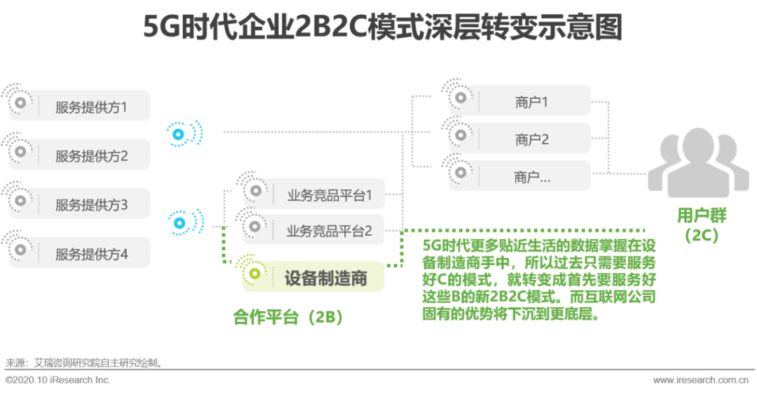 5G新基建将改变商业的本质,是支撑数字经济发展的新型基础设施。5G时代,链接媒介和服务终端归属权的变化,将引发商业模式革命, 2C模式将向2B2C模式的深层转变。