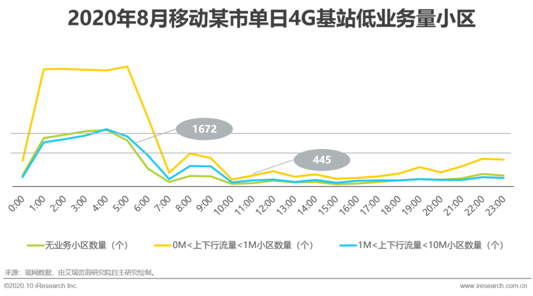 从4G网络的运营情况来看,各方除了持续坚持上述的降本措施以外,运营商还需要提升5G基站的利用率,以降低成本,提升投资效益。以2020年8月中国移动某市单日基站的运行情况为例,全天24小时均有无业务的小区,白天上下行流量小于1M的小区数量在200到1000之间。假设该市之后5G网络亦出现此类情况,以5G基站空载功率2.3KW,转供电1.3元/度进行简单的计算,单个空载站一个小时的电费约3元,那该市一天无业务小区的电费约1.1万元,1M以下小区的电费约2.8万元。