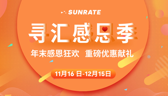 而随着感恩节、黑五和网一的临近,卖家们正在经历2020下半年最为关键的两个月。为了帮助外贸企业更轻松地迎战年终旺季,数字化支付解决方案提供商寻汇SUNRATE特此推出了感恩季重磅优惠,助力跨境卖家更好地抓住这个年末狂欢的大好机遇。