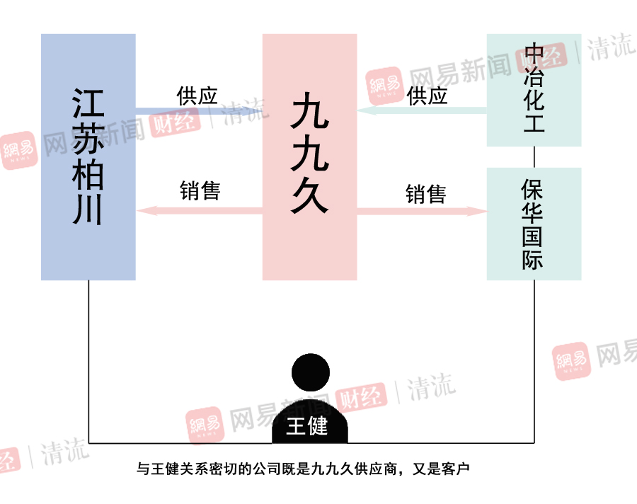 王健与九九久的合作没有随着后者正式上市就此终止。清流工作室从九九久2010年和2011年的年报看到,前述王健实控控制的中冶化工为上市公司当年应收票据的出票单位。此外,九九久2012年报显示,中冶化工为上市公司当年第三大供应商。