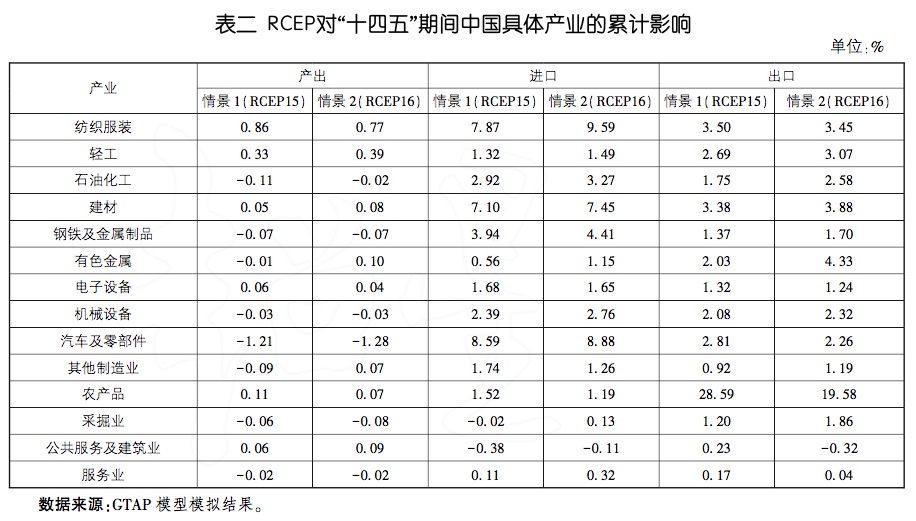 一、RCEP对具体产业的影响:纺织服装受益最大、汽车及零部件受损最大