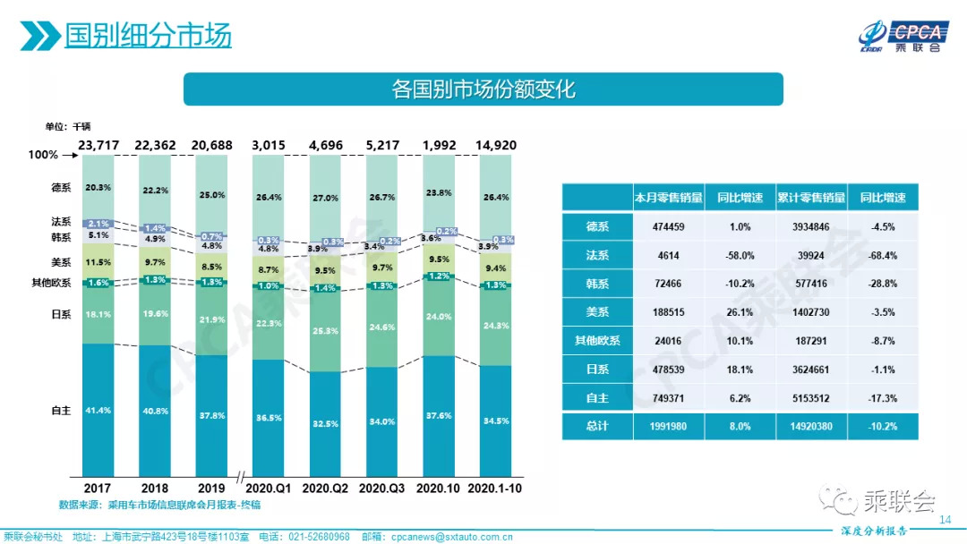 中国作为现代汽车最大的单一市场,1-9月北京现代销量已同比下滑31.6%至 35万辆。根据乘联会最新发布的「全国乘用车市场深度分析报告」显示,韩系品牌1-10月在华市场份额已跌至3.9%,仅次于法系品牌的0.3%。在营收方面,2020年现代汽车第三季度收入同比增长2.3%至27.58万亿韩元,但是营业亏损却达到了3138亿韩元,净亏损达1888亿韩元。